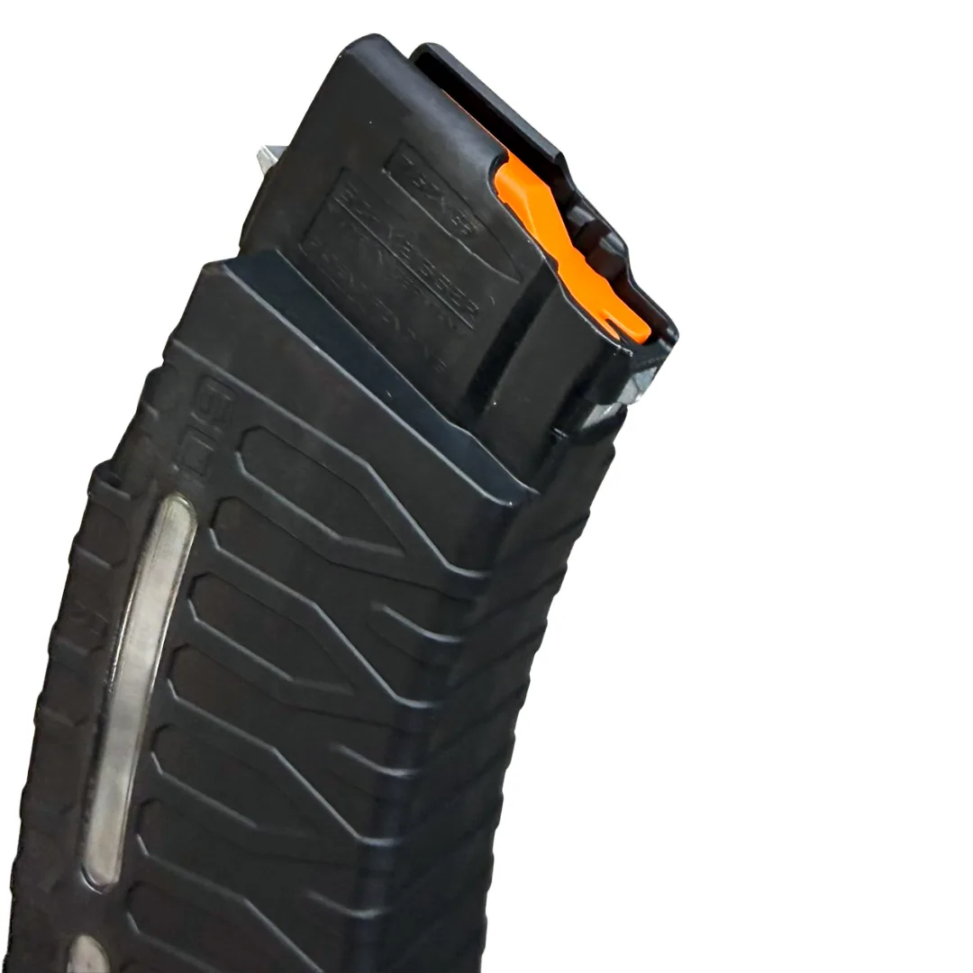 Engineered in Germany using glass-reinforced polymer, this rugged yet lightweight mag features aggressive surface texturing for superior grip during rapid mag swaps. The innovative patent-pending follower system maintains flawless feeding, even when fully loaded. Dual transparent round windows provide quick visual confirmation of ammo status, making this the go-to choice for serious shooters and tactical users alike.