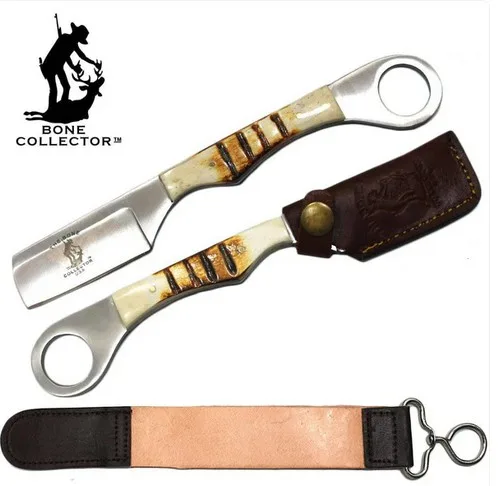 BC 866-BN 8″ Bone Handle Razor Knife with Leather Sheath & Sharpening Strop Belt